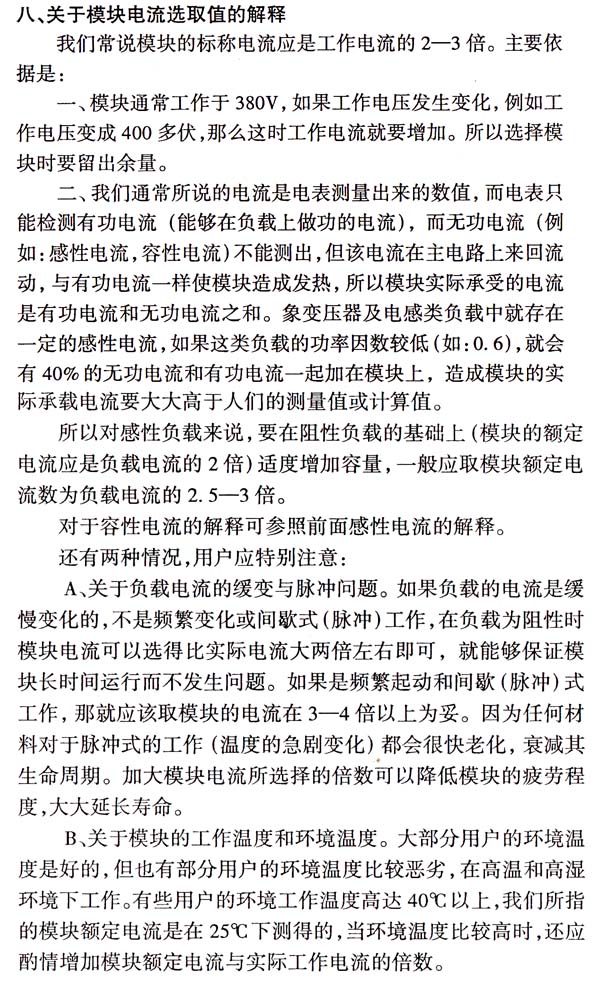 • 關(guān)于模塊電流選取值的解釋